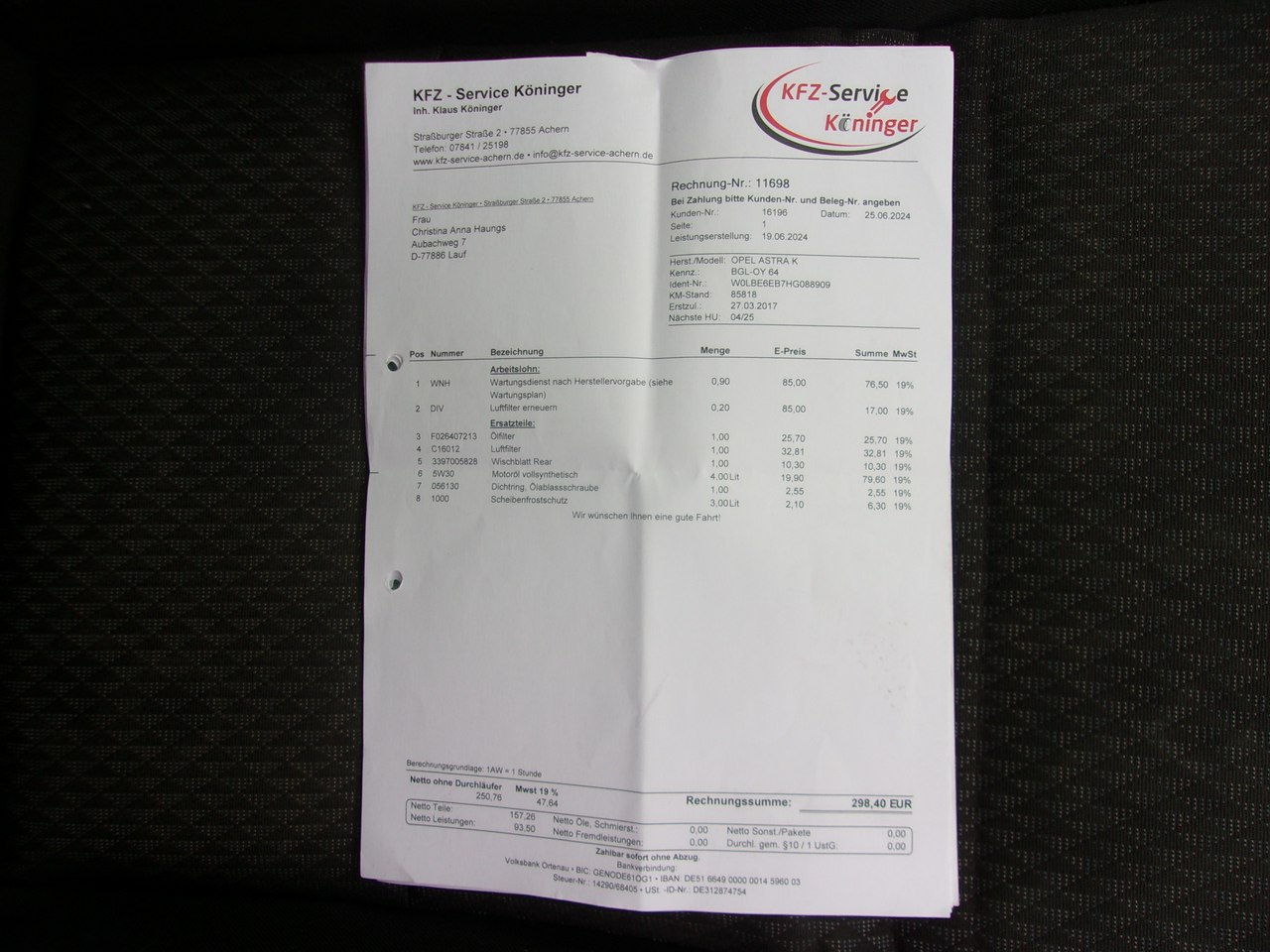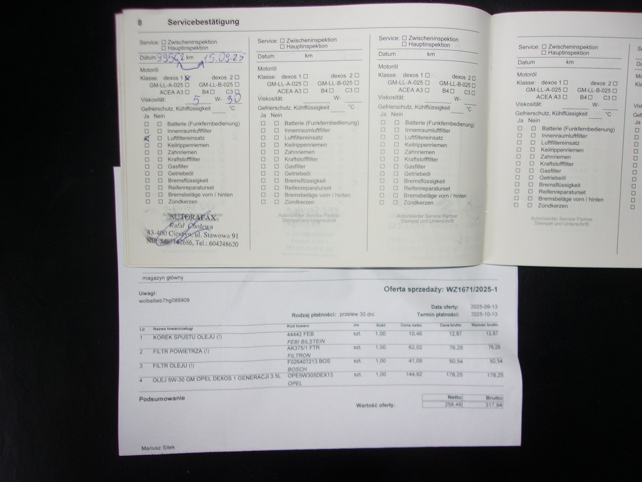 Szczegóły samochodu